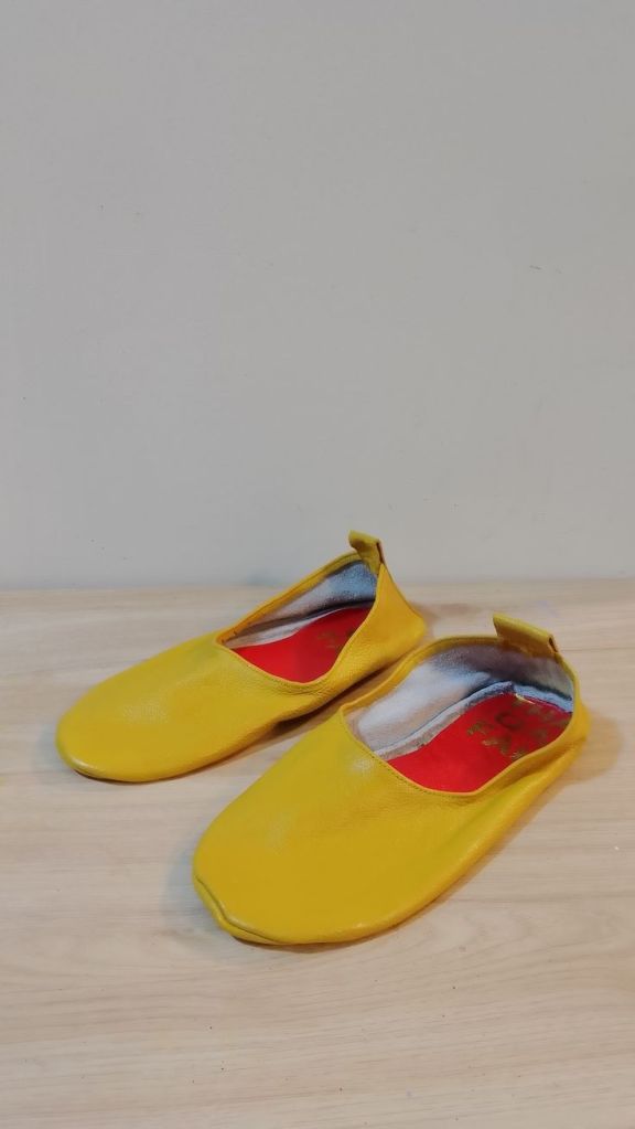 Please Note: Our glove shoes are custom dyed and painted using leather paints. They have soft leather soles and are meant for leisure and lounge wear, and only to be worn on smooth or non scruffy surfaces not for street walking.