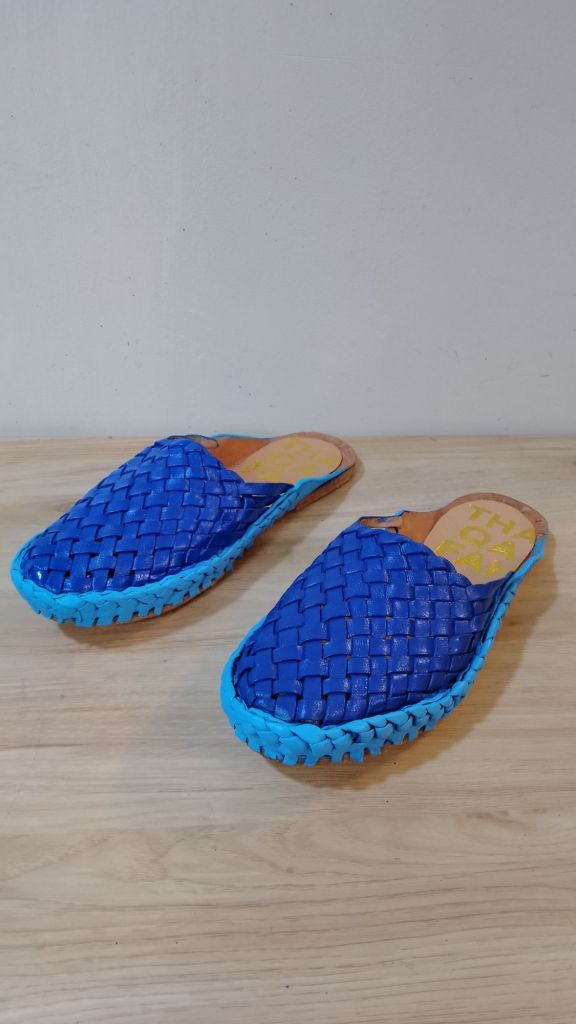 Classic Two toned woven mules made from pure leather from top to soles. The mules are Huaraches inspired and Bohemian style but in a mule.