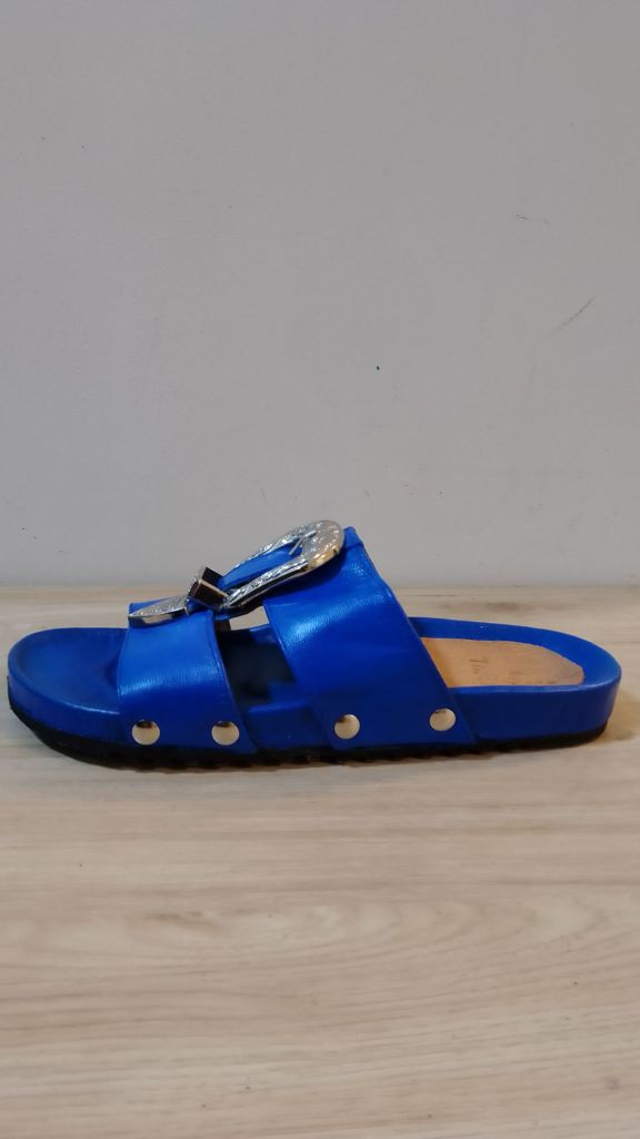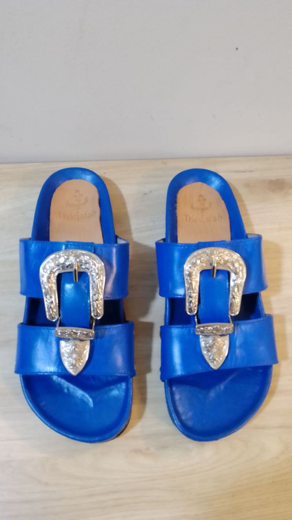 Emirati inspired Arabic sandals, with upper western buckle strap , berkinstock footbed, studded outsoles for a unique design. Handstitched from top to bottom, made from pure goat leather , soft cushion footbed rubber tread soles and very comfortable to wear.