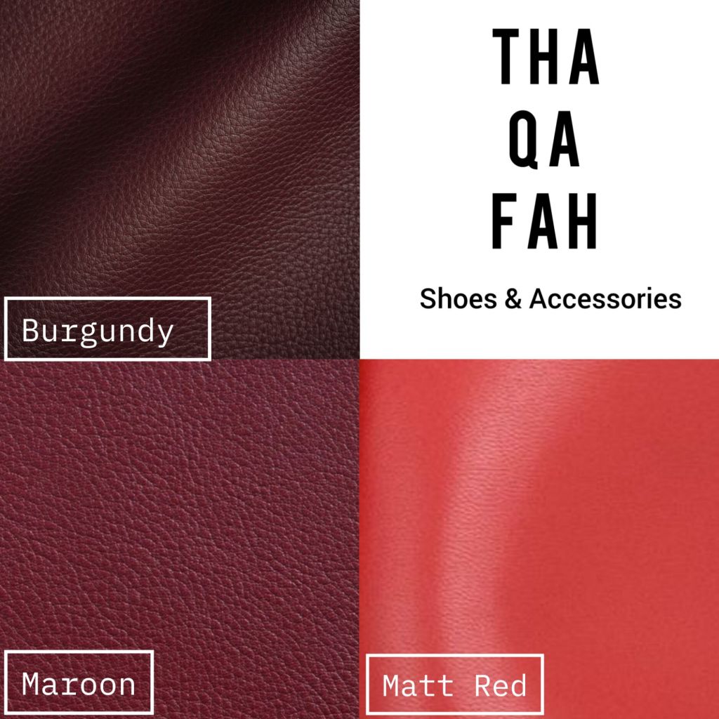 Contact us via WhatsApp +971 52 199 8063 or via email: thaqafahshoes@gmail.com for color requests with the shoe model name and size that you wish to order. You will be given a paypal pay link for your custom order.